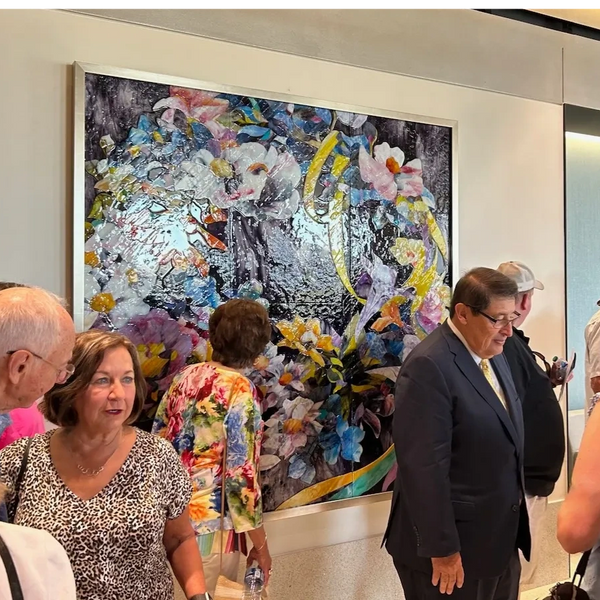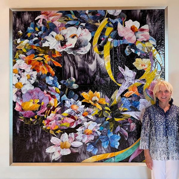 The new University Health Women's and Children's Hospital-San Antonio commissioned Terri to create a glass painting as a signature piece for their main lobby—and the design theme for this new hospital was "In Bloom."